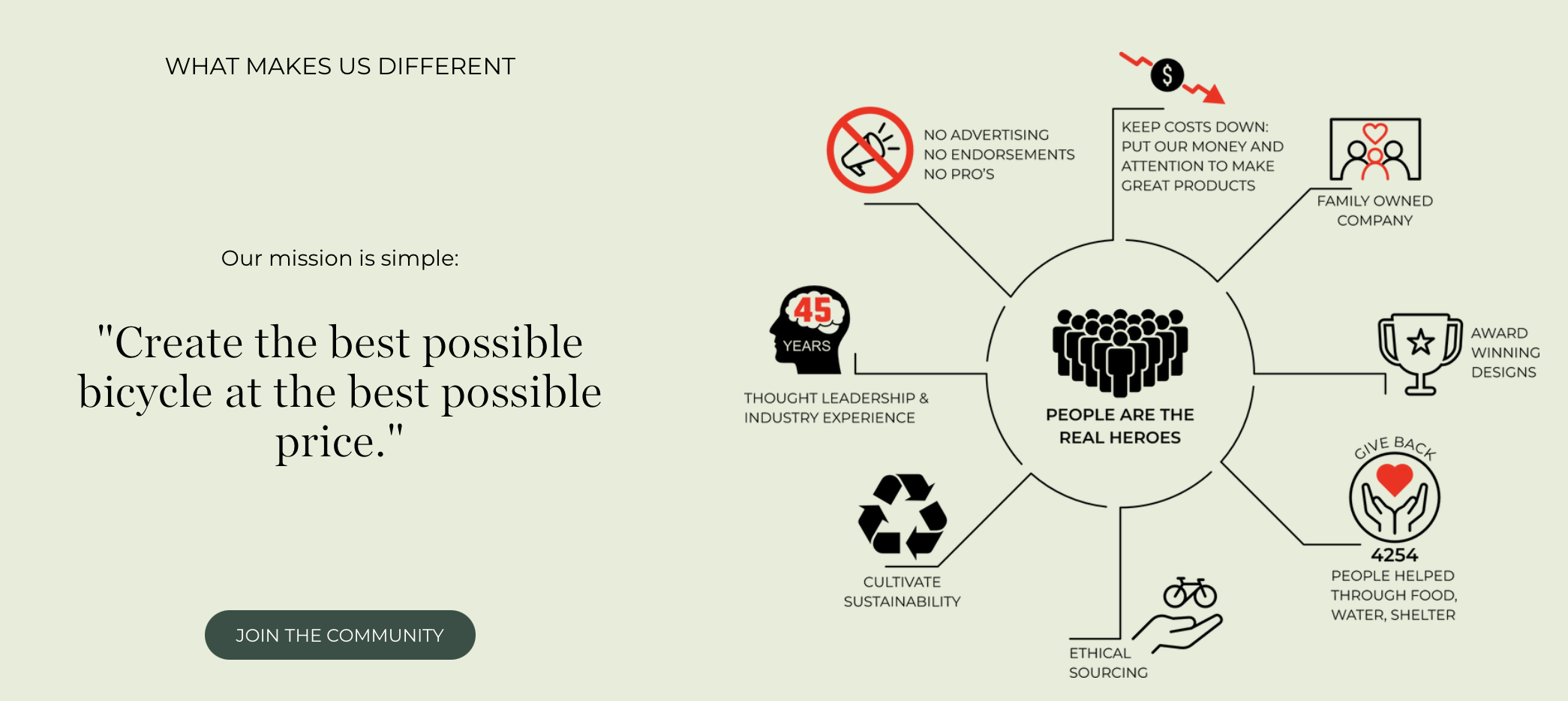 Design engineered bicycles at the right price while leading the way in preserving our planet so we have a place to enjoy our rides and adventures.